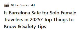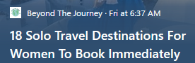 - Social Media and Influencer Culture: Women dominate travel influencer spaces on platforms like Instagram and TikTok, where solo female travelers often share curated stories of adventure. This visibility feeds into media coverage, as outlets like BI amplify influencers’ narratives to capture their audiences. Men, while active in travel spaces, are less likely to frame their journeys as personal or emotional, which doesn’t align as well with the storytelling style of mainstream travel media. For instance, male travelers might focus on logistics or extreme adventures, which are less likely to be packaged as listicles.