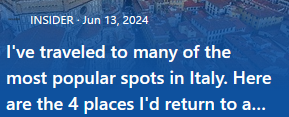 I asked Grok AI about Business Insider and in a follow up question I asked about the content mill nature of their travel writing. Here’s the reply: