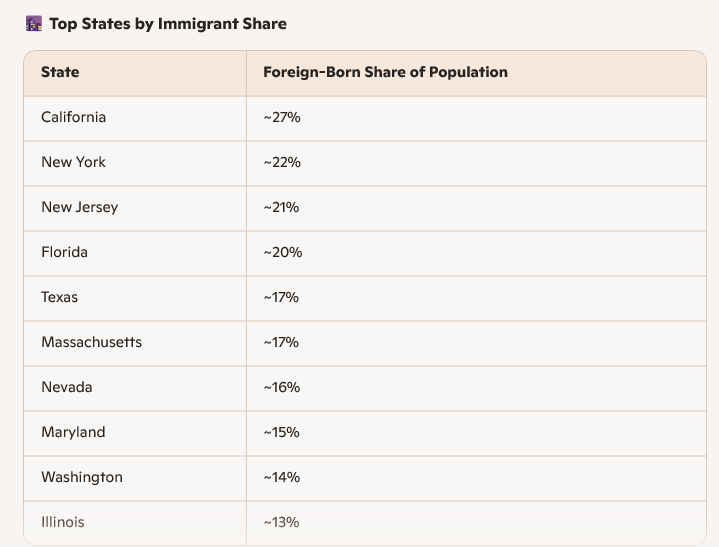 - The % of Americans with close immigrant connections is huge. I had previously estimated this at up to 60% nationwide, particularly if we include those with at least one parent or grandparent who is an immigrant.