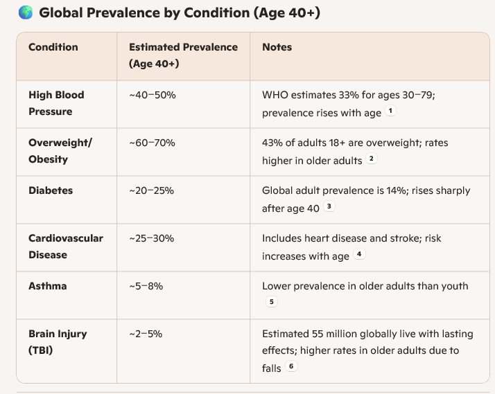 Over 70% of the world’s population over the age of 40, 85% over the age of 60, and 90% over the age of 65 have at least one of the above conditions and would be excluded from receiving a long stay visa in the United States. Some people have multiple conditions so you should not add these percentages together: